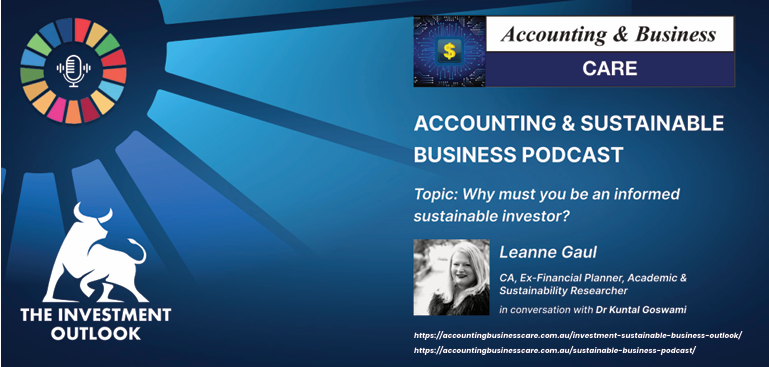 Citation: Gaul, L.(2026) ‘Why must you be an informed sustainable investor?’inK. Goswami (ed.)Investment & Sustainable Business Outlook, Article: 1, Issue:1,Volume:1 pp. 01-20, https://accountingbusinesscare.com.au/investment-sustainablebusiness-outlook/ or https://accountingbusinesscare.com.au/informedsustainable-investor/
